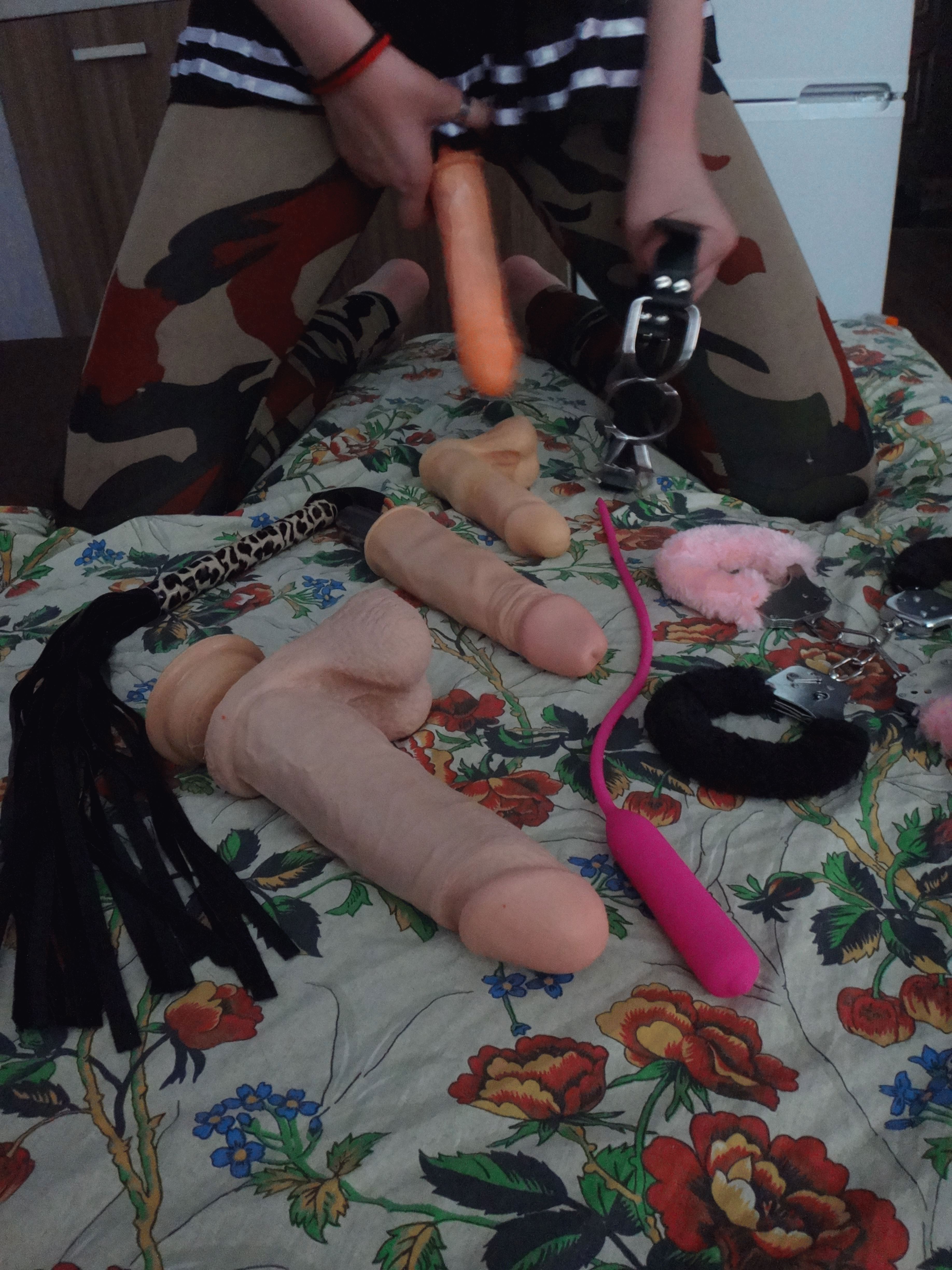 Есть страпоны разных размеров, наручники, плетки и кое - что для самых искушенных...